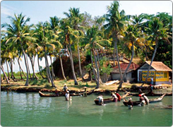 Green, riotous green. It’s everywhere you look, towering above the narrow backwater canals, reflecting in the gentle water. And you float down in a houseboat, gently, like a dream.