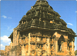 A visual masterpiece, the solitary Sun Temple is a masterpiece surrounded by the drifting sands. The theme of worshipping the sun god is central to India. The presiding deity Konark, kona (corner) and arka (sun) lends its name to the temple. The Sun Temple has been designed in the form of a huge chariot carrying the Sun God across the heavens. The wheels of the chariot are the most awesome part of the structure and the eroticism of the sculptures can be compared with the temples of Khajuraho.